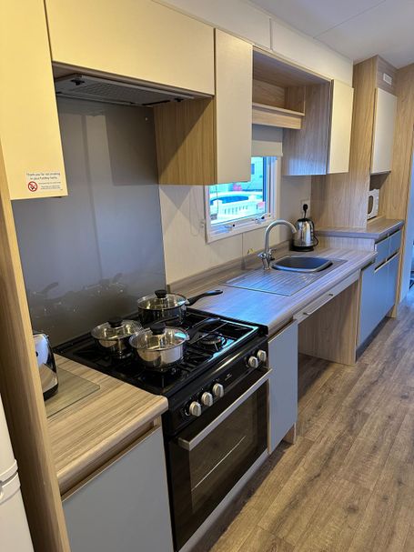 Layout: A modern, clean, and well-maintained caravan fitted with double glazing and gas central heating. There is a non-slip ramp that allows access to the interior and all the rooms have extra-width sliding doors.